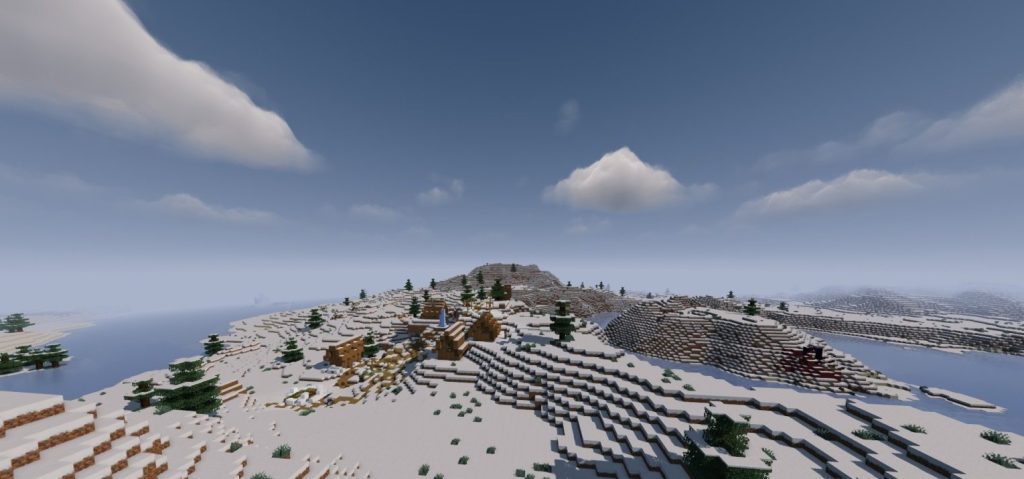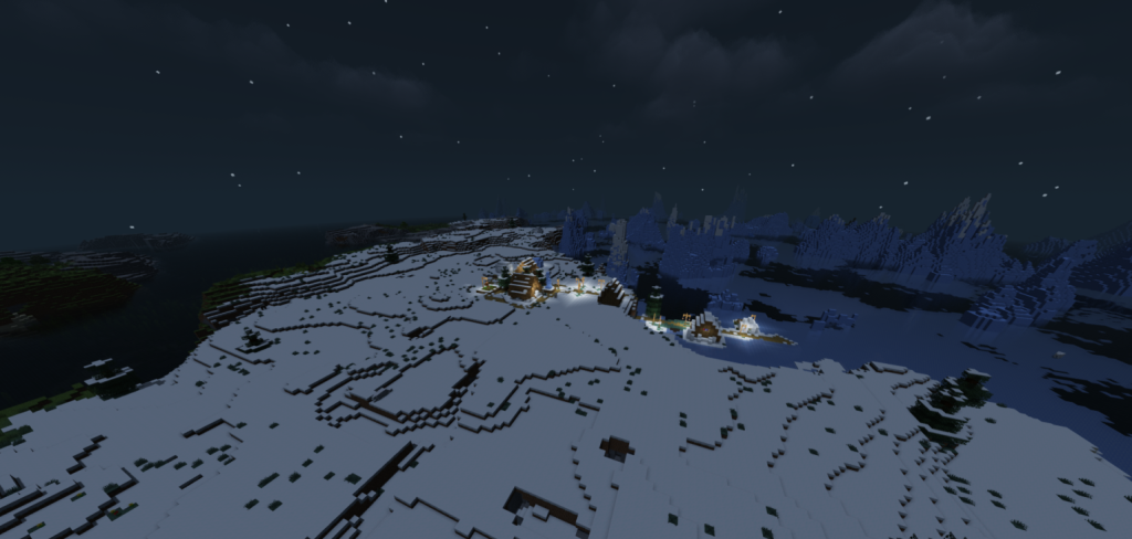 Für alle, die eine einsame Dorfatmosphäre lieben, ist dieser Seed etwas ganz Besonderes. In dieser weiten, mit weißem Schnee bedeckten Landschaft erwartet Sie ein kleines, aber hell leuchtendes Dorf. Es ist perfekt für diejenigen, die in einer kalten und ruhigen Welt einen warmen Start hinlegen möchten. Auch wenn es nicht zu unseren absoluten persönlichen Favoriten gehört, ist die märchenhafte Winterstimmung dieses Ortes nicht zu übersehen.